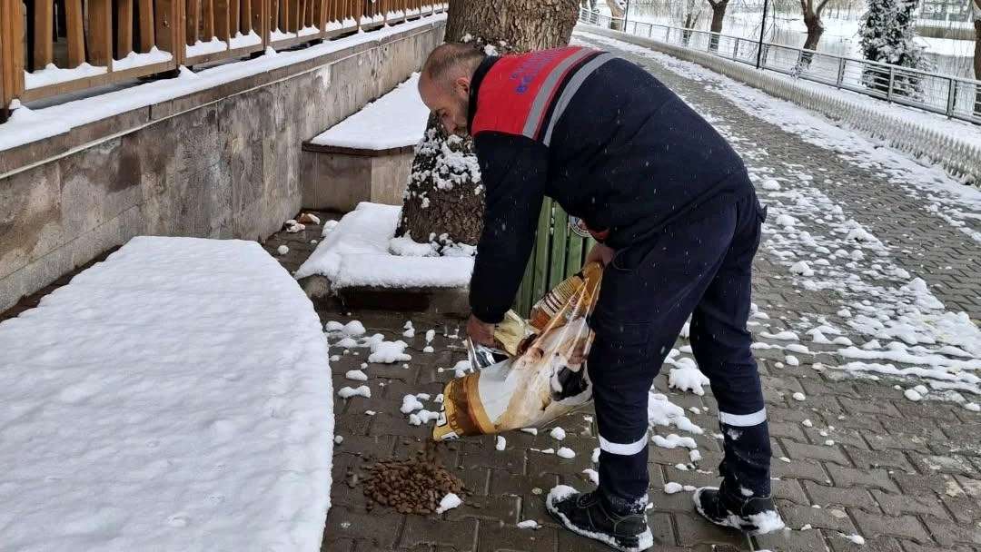 Avanos Belediyesi, kış şartlarında yiyecek bulmakta zorlanan sokak hayvanları için mama ve yem desteği sağladı.