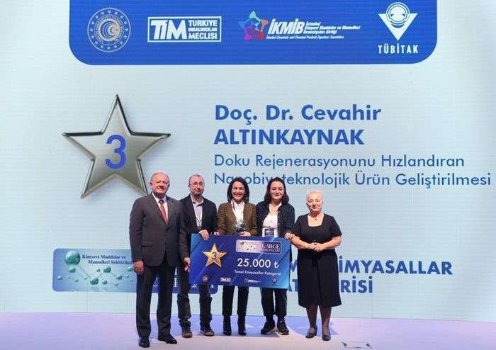 Yürütücülüğünü Nevşehir Hacı Bektaş Veli Üniversitesi (NEVÜ) Avanos Güzel Sanatlar Meslek Yüksekokulu Bitkisel ve Hayvansal Üretim Bölümü öğretim üyesi Doç. Dr. Cevahir Altınkaynak’ın yaptığı “Doku rejenerasyonunu hızlandıran nanobiyoteknolojik ürün geliştirilmesi” başlıklı projesi, 11’incisi düzenlenen Kimya Ar-Ge Proje Pazarı Ödül Töreninde ‘Temel Kimyasallar’ kategorisinden en iyi 3. proje seçilerek 25 bin TL ödüle layık görüldü.